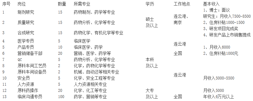 非营销岗位收入:无试用期,月薪本科6000以上,硕士7500以上,博士10000以上,另享受住房补贴1000-1500,并依据不同岗位享受绩效及其他奖金等。