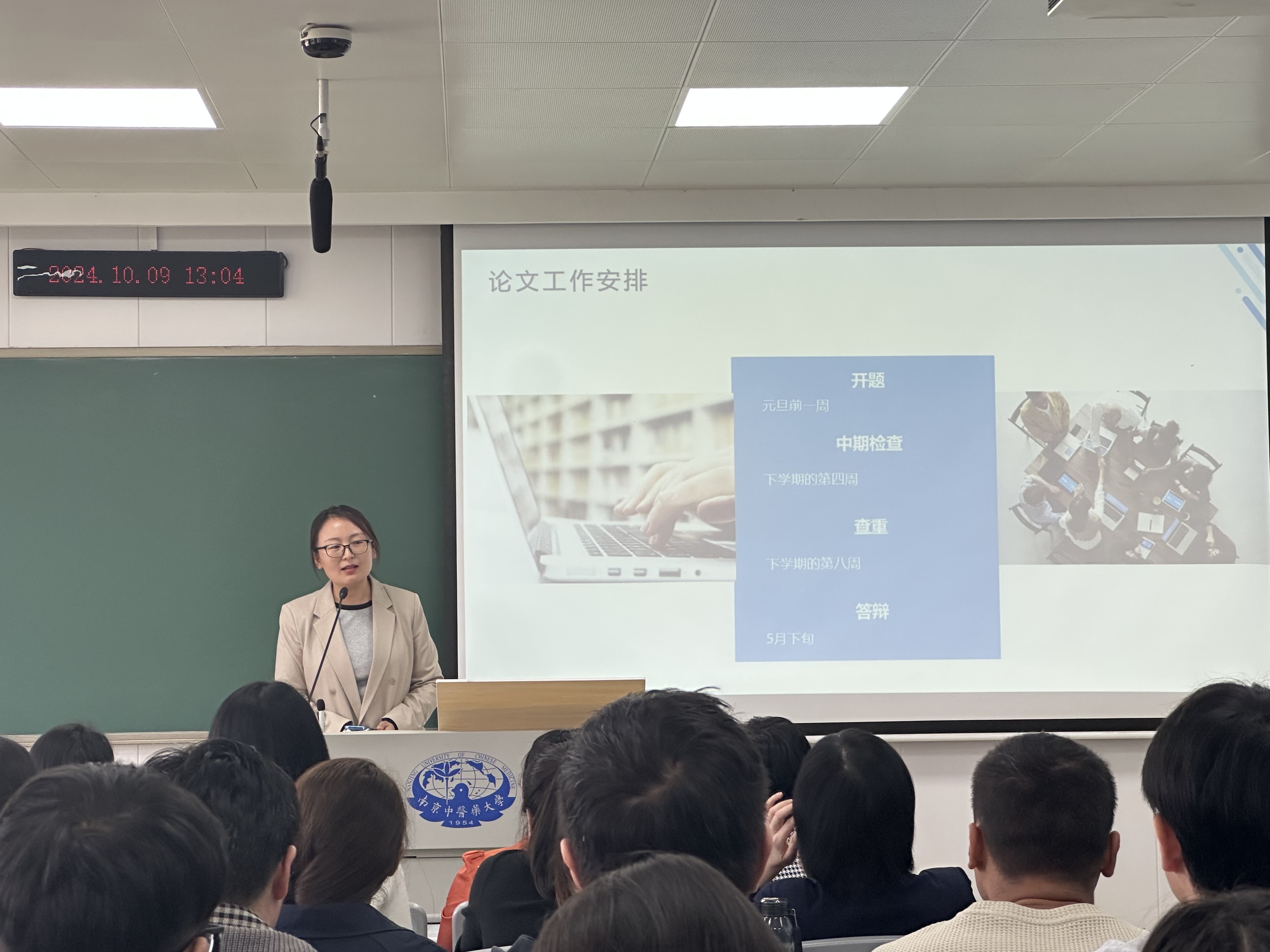 会议伊始,杜启霞老师介绍了本次毕业论文选题工作的总体情况,同时对毕业论文撰写的时间节点和要求、学生们在撰写及提交论文时应注意的事项进行了详细的说明。