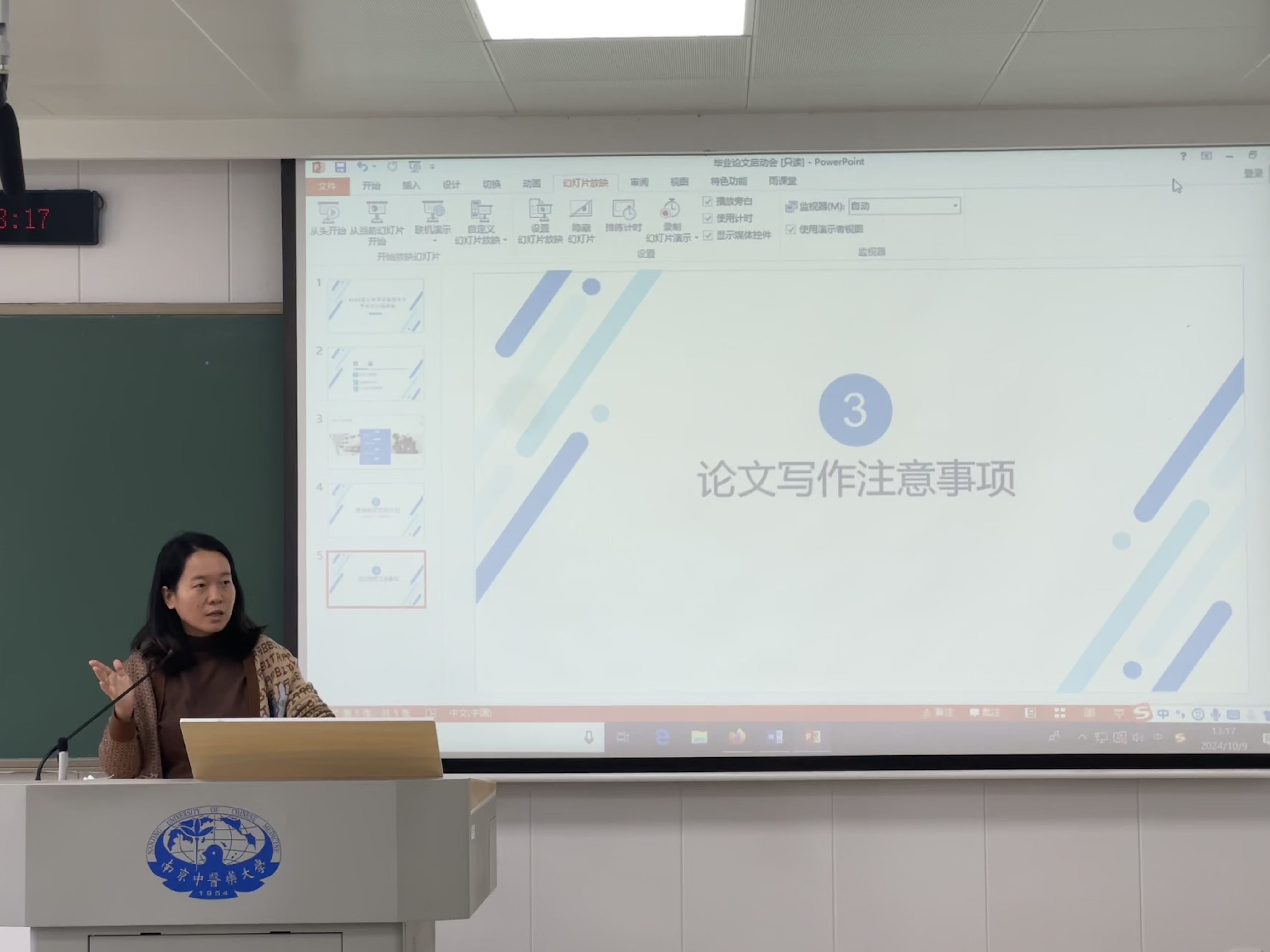 在第三个环节中,张瑞利老师对本科毕业论文的重要性和意义进行了阐述。她结合往届优秀论文,从结构、格式、内容等多个方面指出论文写作中的注意事项,引导学生们树立正确的写作观念,提倡学生从实际出发,真题真做将论文写在祖国大地上,要求严谨态度和专业素养并重,确保论文规范、科学、创新。