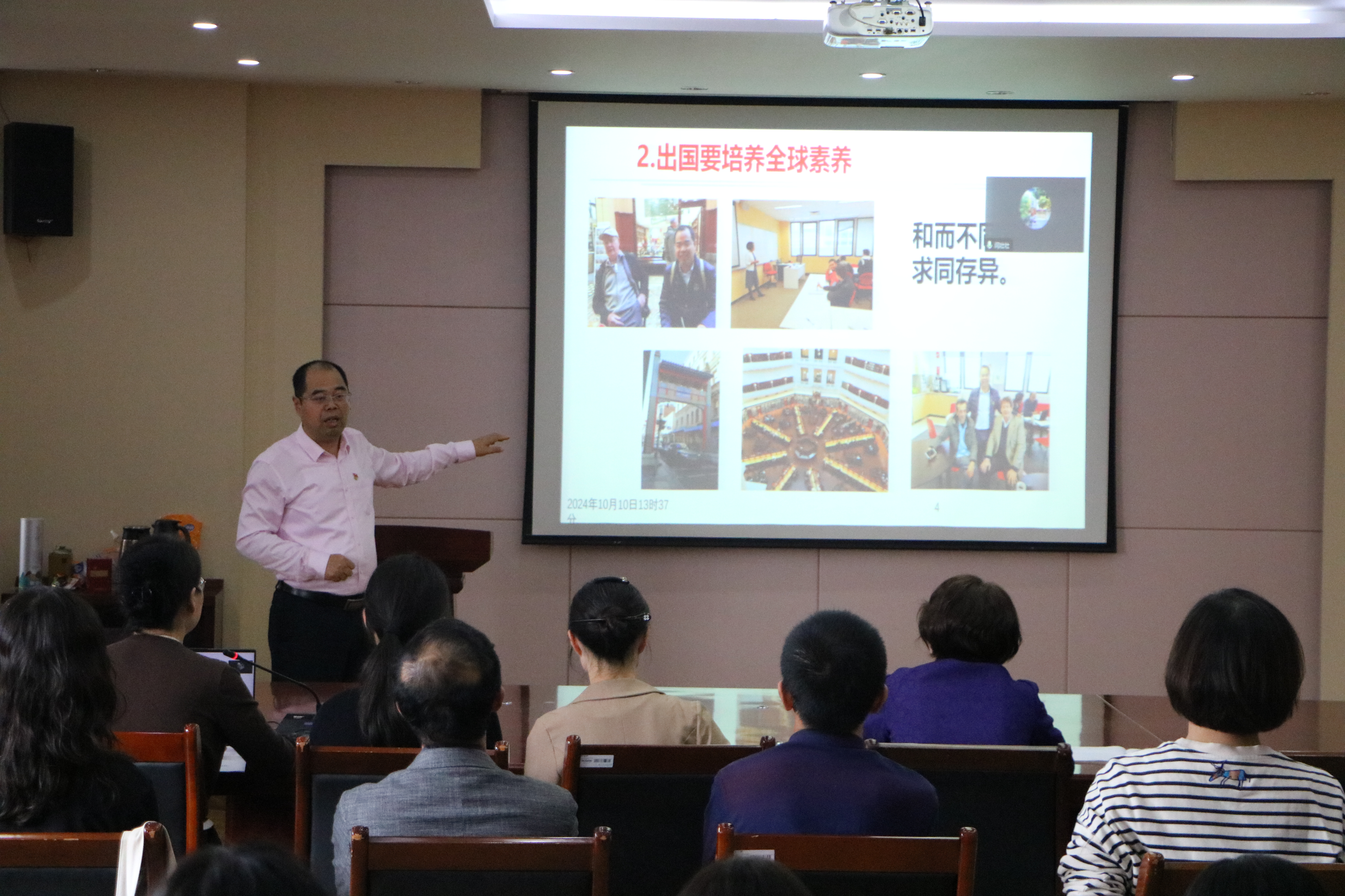 公共管理系系主任王安老师以自身赴澳任教的经历体会,向全体学生党员及入党积极分子深入浅出地阐述“出国会更爱国”的内涵,并强调培养“和而不同,美美与共”全球视野的重要性。